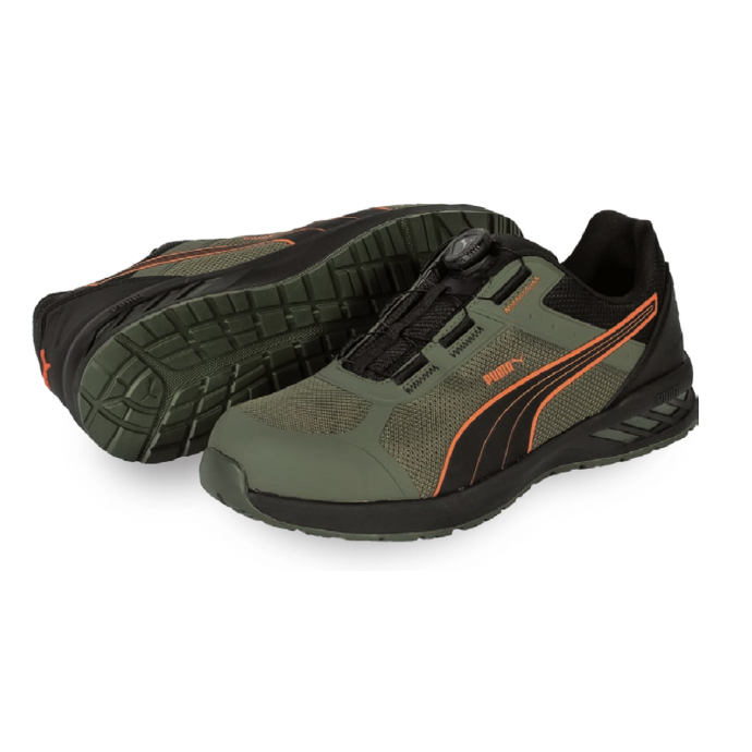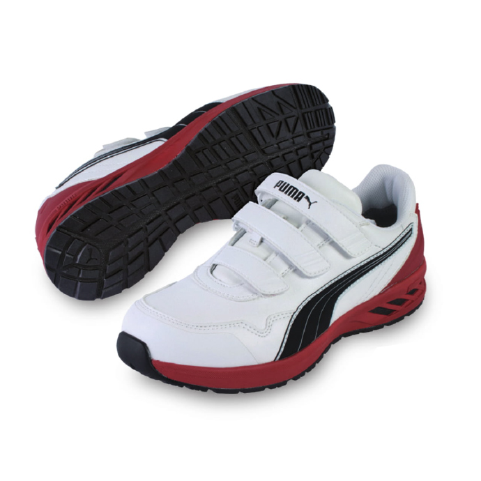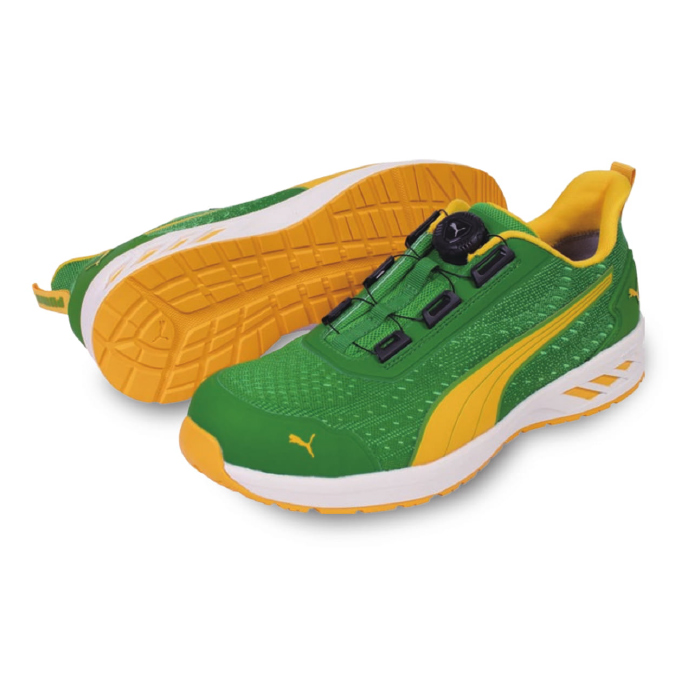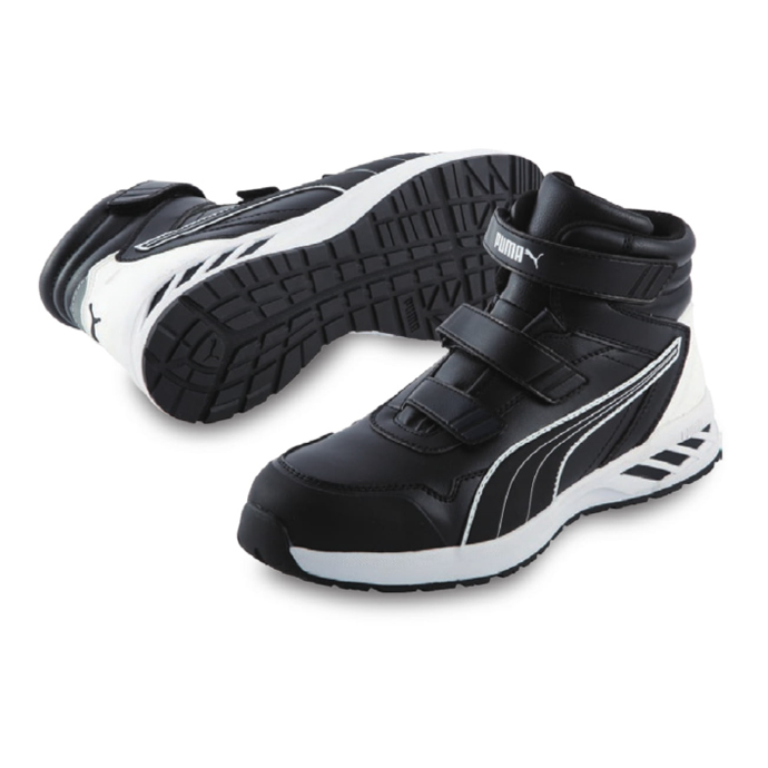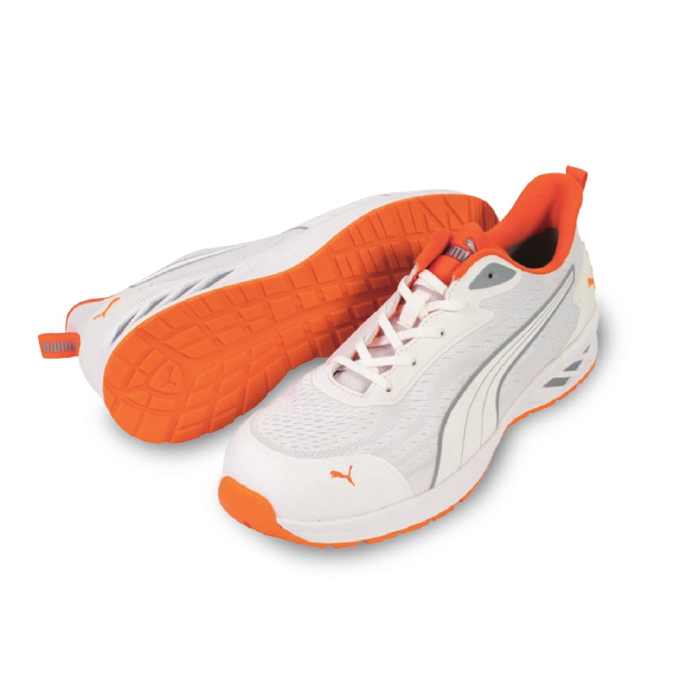 PUMAセーフティスニーカーの最軽量モデル。「セーフティニット®」が足によく馴染み、屈む作業や不安定な足場でもノンストレスな履き心地。