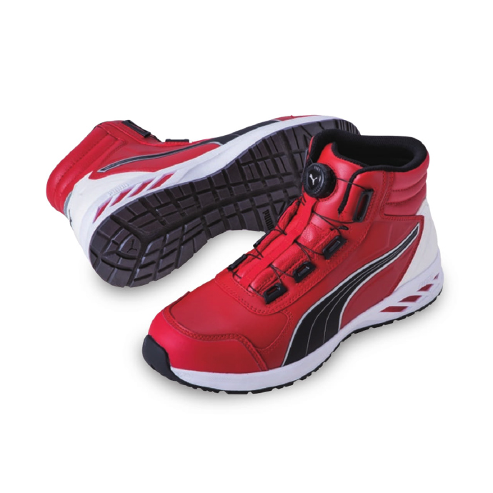 PUMAセーフティスニーカーの軽量モデルSPRINTシリーズからミッドカットモデルが登場。軽快なメッシュと、速攻で足にフィットする「DISCレーシングシステム」で、ワークシーンをスマートに引き上げる。